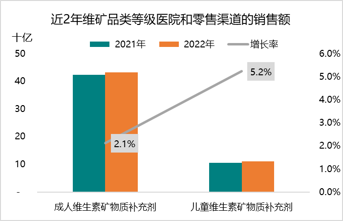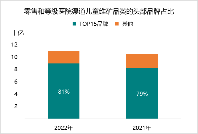 国家统计局数据显示,2017年-2022年我国出生人口连续6年减少,2022年出生人口为956万人,出生率为6.8‰。 人口结构变化对健康产业,尤其是儿童类产品将带来何种影响?本文将通过近两年的实体零售和等级医院终端数据一睹其中趋势。 图1:近6年我国新出生人口情况 来源:国家统计局 首先,在维生素矿物质补充剂品类中,儿童维矿补充剂增速快于成人维矿补充剂。 数据显示,在零售和等级医院终端渠道,成人维矿虽占总品类约80%的规模,但在增长方面乏力。 2022年维矿补充剂大类同比增长2.7%,其中成人维矿补充剂和儿童维矿补充剂的增长率分别为2.1%和5.2%。 儿童维矿补充剂品种主要是非处方药。 数据显示,在零售和等级医院终端渠道,儿童维矿补充剂主要由OTC产品组成,2022年占比达到88%,较上年增长2个点。 其次是保健品和健康食品,占10%,较上年回落1个点;而处方药占比较小,仅有2%的份额。 另外,儿童维矿补充剂的头部品牌集中度进一步提高。 数据显示,在零售和等级医院终端渠道,儿童维矿补充剂TOP15品牌在2022年占总市场的81%,头部集中效应明显,且相比2021年集中度进一步提升。 同时,TOP15内部产品规模相差较大。 儿童维矿补充剂TOP15产品(按通用名排序)排名前三的分别是葡萄糖酸钙锌、维生素AD和碳酸钙D3。 其中,葡萄糖酸钙锌在等级医院和零售渠道的销售额达到32亿,与第二名的维生素AD相比相差12个亿,第15名仅有TOP1的2.2%。 图片/数据来源:开思CHIS数据库,中康产业研究院整理 (新康界)