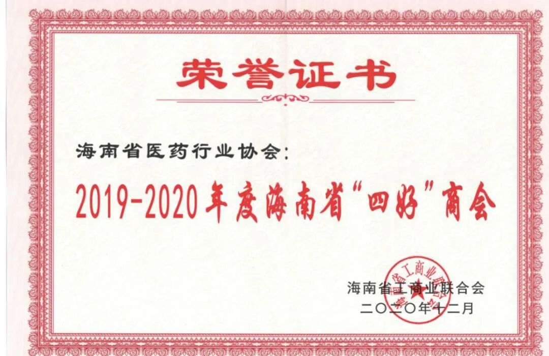 2020年12月15日,海南省工商联发布《关于认定2019-2020年度海南省“四好”商会的通报》,我协会继认定为2017-2018年度海南省“四好”商会后,再次荣获“四好”商会称号。