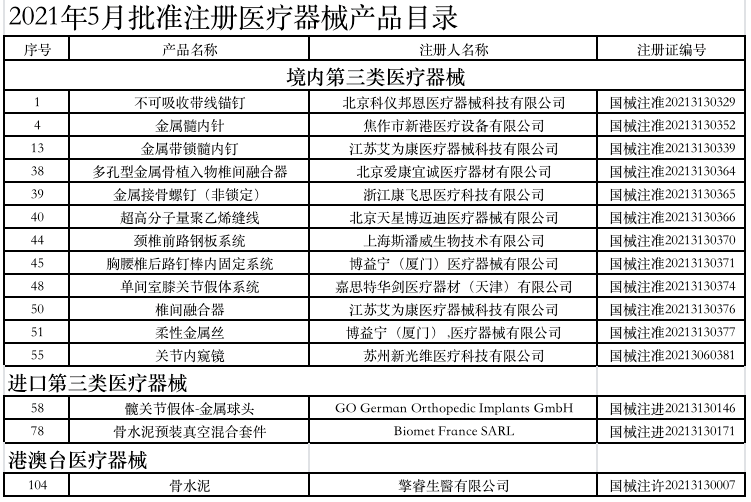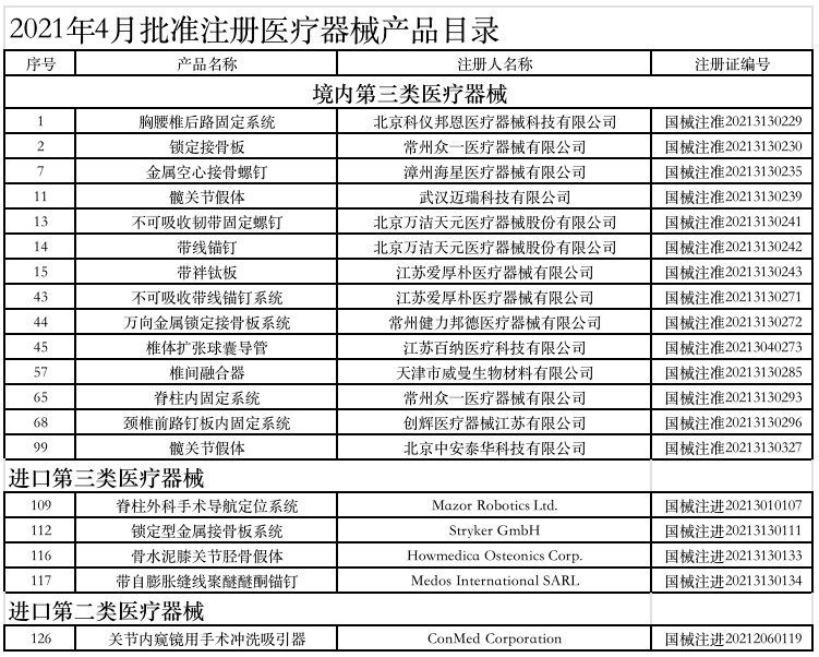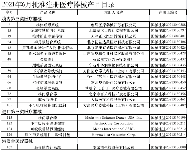 据统计,2021年1月-6月,国家药监局共批准注册了736个医疗器械,其中骨科产品100个,分别是35个脊柱产品,19个创伤产品,18个关节产品,24个运动医学产品和4个其他类别产品。