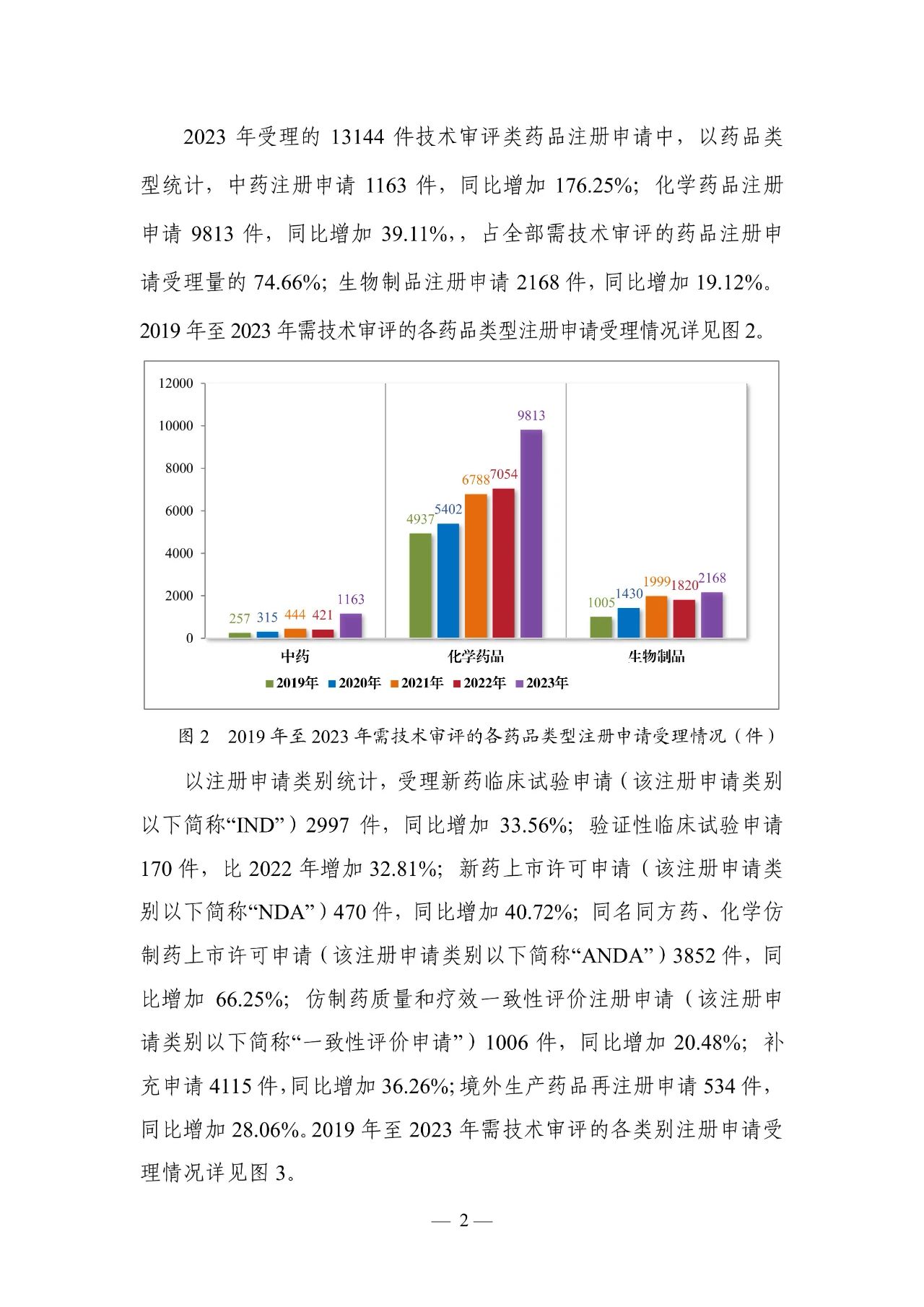 2023年度药品注册申请申报量持续增长