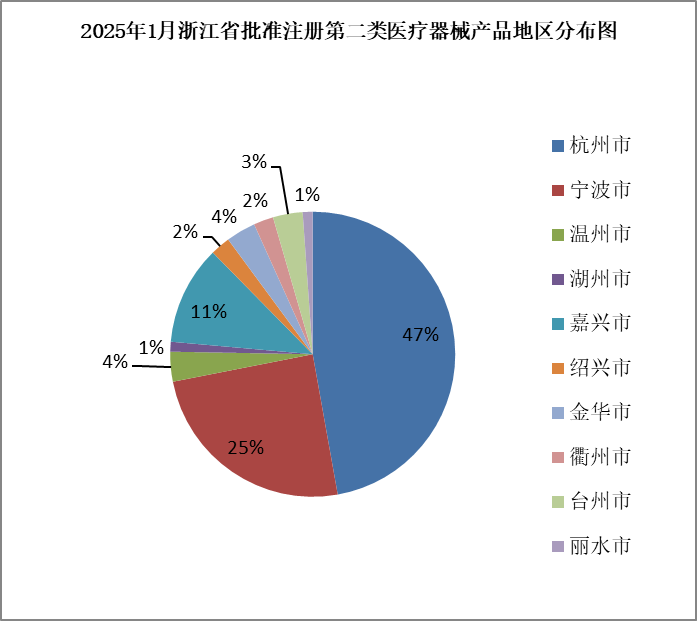 2025年1月,浙江省药品监督管理局共批准注册第二类医疗器械产品89个,其中有源类40个,无源类31个,体外诊断试剂18个(具体产品见附件)。