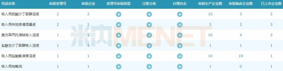 米内网数据显示,目前6个吸入剂已有企业过评,其中吸入用硫酸沙丁胺醇溶液、吸入用布地奈德混悬液过评企业数均达2家;除了韩美药品的吸入用盐酸氨溴索溶液,其余5个均为国产吸入剂。