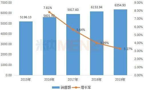 图1:2015-2019年中国公立医疗机构终端化药注射剂销售情况(单位:亿元)